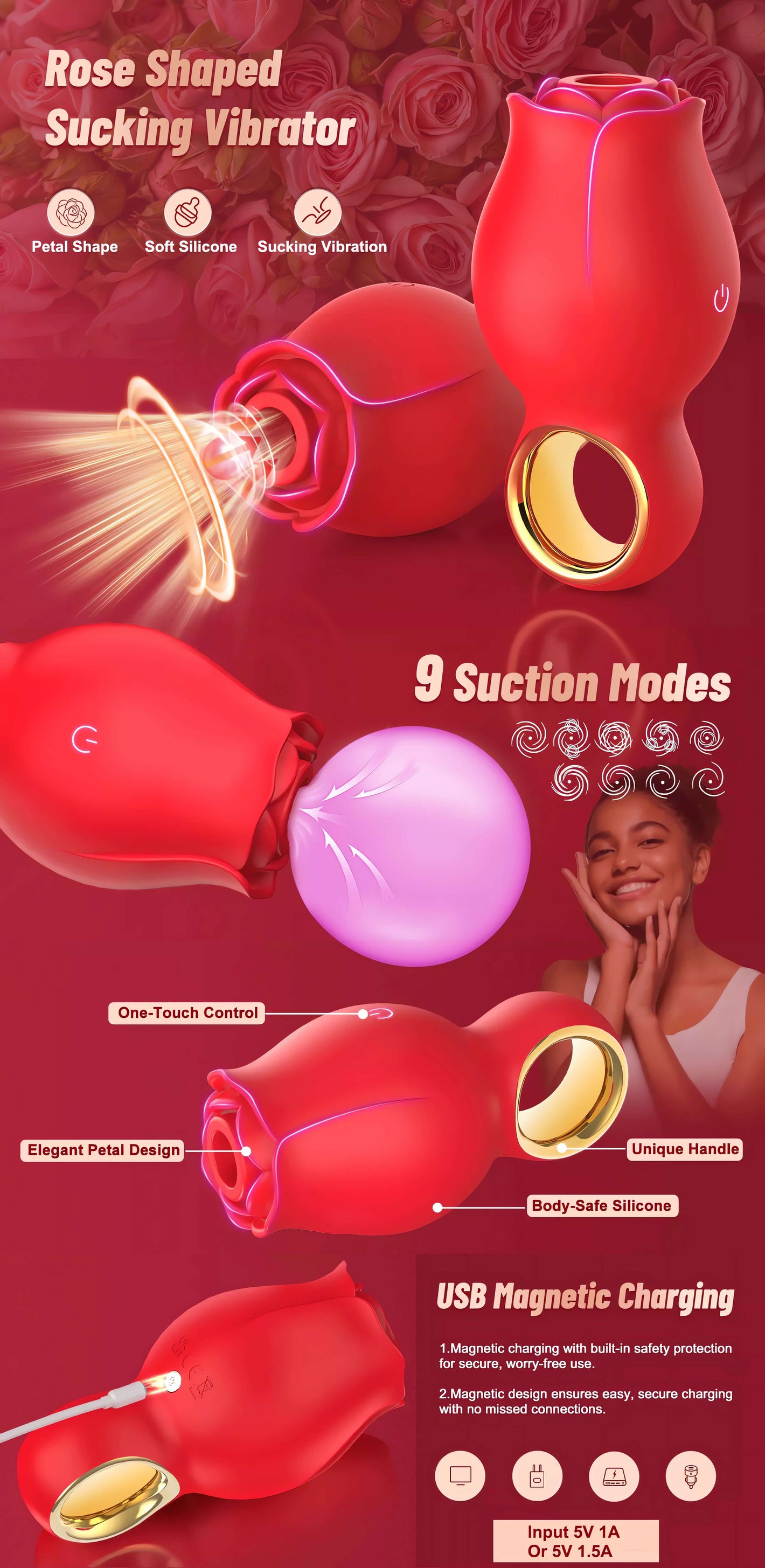 Sit back, relax, and gently place the suction tip of the Rose Vibrator on your clitoris. Experiment with different positions and patterns until you find your sweet spot.